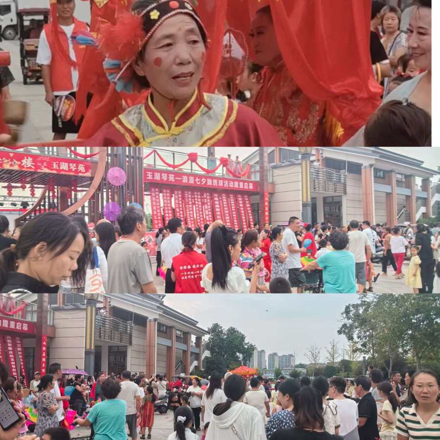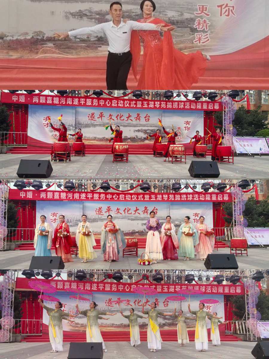 授牌仪式后,文艺演出轮番上演。陈云鼓舞迎亲队以《今天是个好日子》拉开序幕,激昂鼓点象征两颗喜糖平台在全国传递“爱的共振”;燕姐舞蹈队化身“七仙女”起舞,期间市民扫描现场二维码进群即可参与红包雨、赢取礼品;侯云、唐五妮演绎黄梅戏《天仙配》,呼应两颗喜糖“以结婚为目的、AI精准匹配”的理念;吴霞、龙建国的《梁祝》舞蹈,展现经典爱情故事的动人;燕姐舞蹈队还带来《我把故乡比苏杭》,用舞姿呈现玉湖美景,以及《抛绣球》表演,还原遂平作为抛绣球招亲习俗发祥地之一的文化底蕴;陈云鼓舞迎亲队的《抬花轿》民俗表演,尽显中原婚嫁文化特色;最后,《天女散花》舞蹈为演出画上圆满句号。