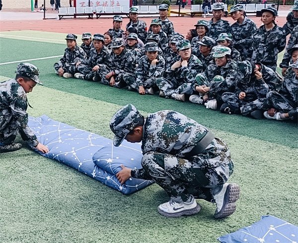 “豆腐块”被子怎么叠?生活用品如何摆放?”内务整理课上,教官们现场示范、耐心讲解,从被子的压线、棱角塑造,到书桌物品的分类摆放,引导学生养成规范有序的生活习惯,将“自律”二字融入日常点滴。
