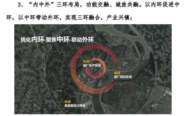 舍得酒业在可行性研究报告中提到,该项目将分为三个板块,其中在内环的舍得生态酿酒工业园区域,将实现从传统酒厂观 光游到文化深度体验游的全面升级,“打造老酒对话世界的窗口,让舍得老酒的品质不仅喝得出,还能看得见、摸得着、闻得到”。