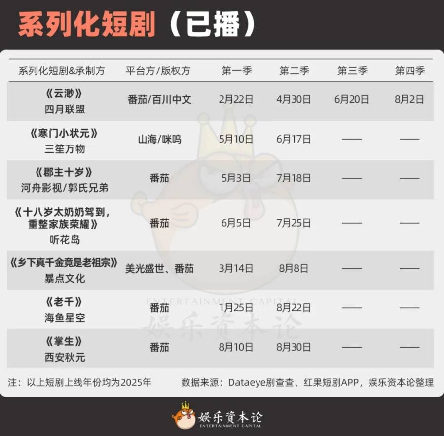 今年暑期档有了《云渺4》和《十八岁太奶奶2》的成功先例后,短剧系列化明显变快、变多。