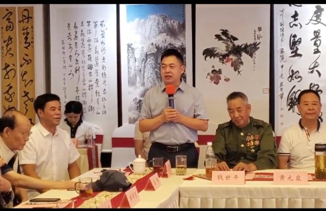 华瑞集团总裁黄元泉在发言中表示, 今天,我们有幸参与纪念中国人民抗日战争暨世界反法西斯战争胜利80周年的书画笔会活动,以实际行动,向先烈致敬,向英雄致敬,继往开来,赓续红脉。我们将继承和发扬革命先烈光荣传统,不忘历史,牢记使命,奋发图强,坚决维护祖国安全,坚定不移走和平发展道路,从历史中汲取前行的智慧和力量,开创更加光明的未来。