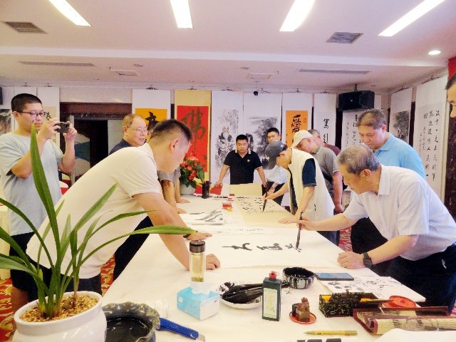 仪式结束后,老领导和书画家们便赓即投入到紧张的书画创作中,现场挥毫,墨香满庭,笔墨横姿,鸾翔凤翥。参加本次书画现场笔会的艺术家,既有德高望重的军地老领导,也有闻名遐迩的书画名家。大家不仅艺术精湛,而且激情满怀。