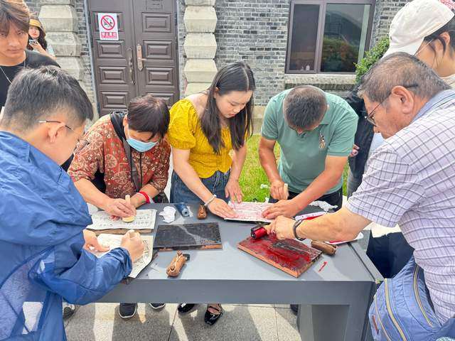 同时,为生动践行文物保护活化利用,借助云南省级非遗传承人尹万松老师以构树皮为原料古法制造的白棉纸为拓印纸张,以周保中将军和抗联战士以及纪念馆场景图为主题元素,邀请大理甲马州级非遗传承人张仁华老师创作了7块木板画,首次推出从白族甲马画演变出的原创木板画拓印体验活动,观展群众争相现场体验白棉纸薄如蝉翼、吸水性强、质地坚韧的特点,拓印出色彩鲜明、栩栩如生的人物形象,零距离感受红色文化+大理非遗的魅力。