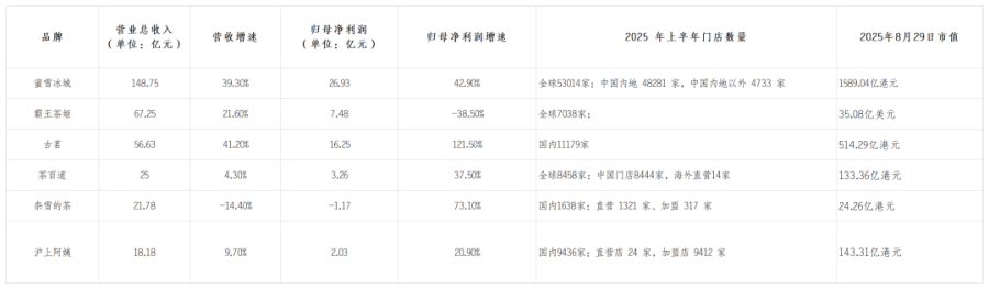 2025年上半年,在深度参与外卖大战的新茶饮品牌中,除奈雪的茶之外,古茗、沪上阿姨、茶百道、蜜雪均实现了营收与利润的双重增长。