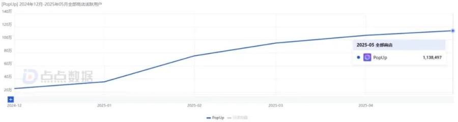 (2024年12月至2025年5月PopUp印尼地区月活跃用户变化数据来源:点点数据)