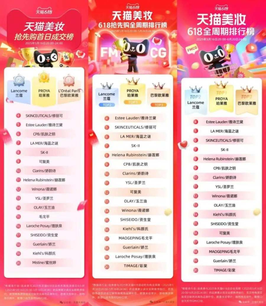 在今年6・18大促中,自然堂在天猫美妆排行榜中更是颗粒无收,在抖音的6・18全周期美妆品牌榜中则是勉强进入前10。