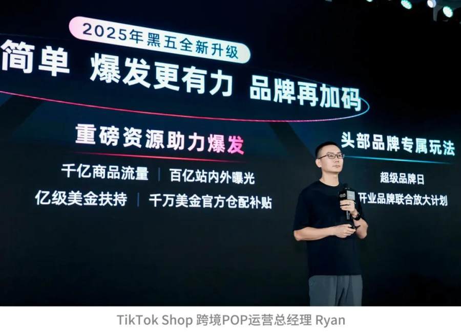TikTok Shop跨境POP运营总经理Ryan说:“今年黑五,我们将给予商家全年最重磅资源,商家双倍发力,即可迎来多重增长!”