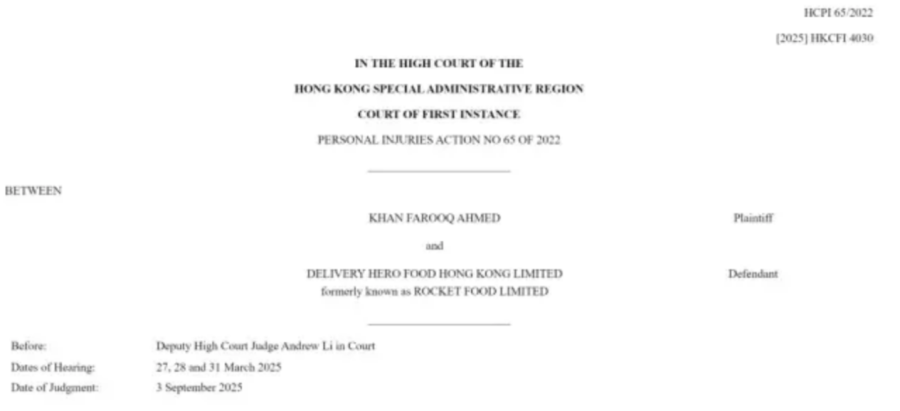 外卖员送完餐回家途中受伤,外送平台Foodpanda被判赔偿134万港元