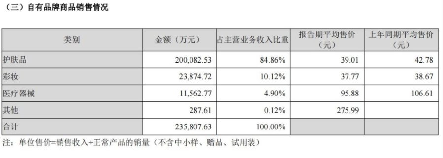 值得注意的是,2024年“双11”,薇诺娜曾因“先涨价后打折”引发舆论风波。进入2025年,公司又选择不断降价以换量。上半年护肤品均价39.01元,较上年同期42.78元下滑近4元,相比2023年同期的49.96元更是跌去近11元。彩妆均价从54元降至37.77元,医疗器械均价从106.61元降至95.88元。