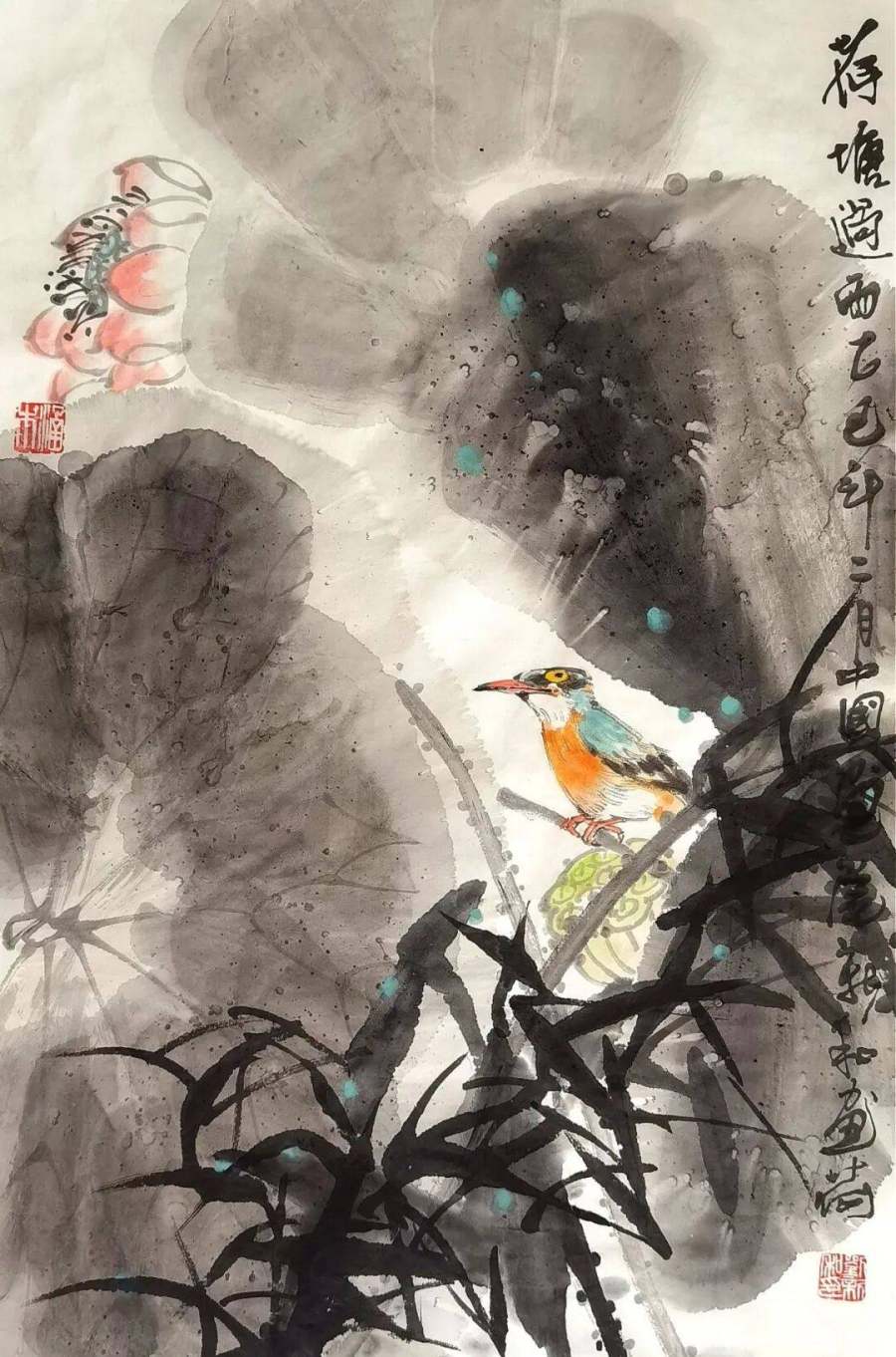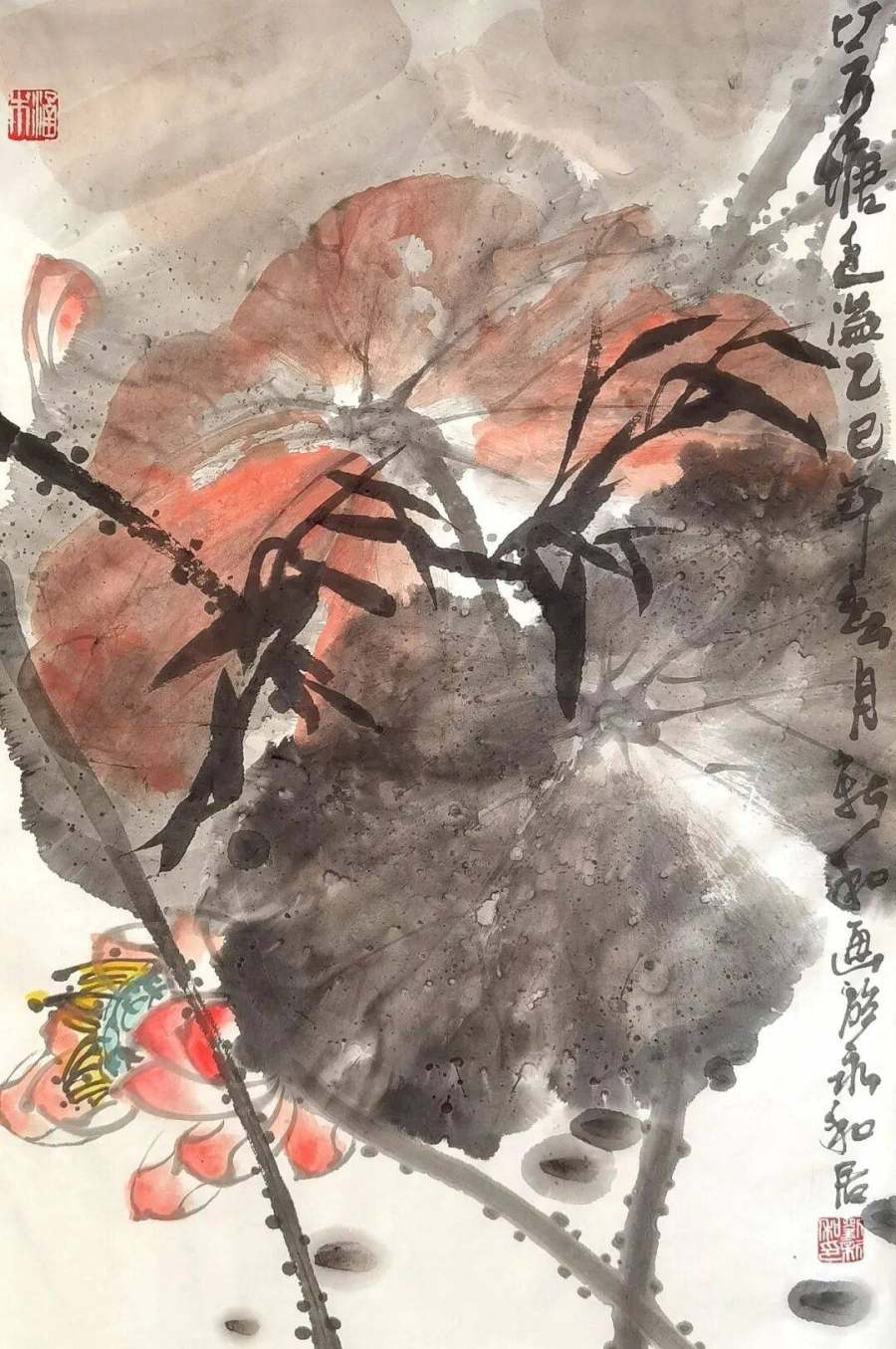 新和兄还创作了许多以市井百态为主题的小品画,这是水墨镜头下的烟火人间。在他的速写本里,藏着另一个平行宇宙:菜市场拎着活鱼讨价还价的大妈,胡同口下象棋拌嘴的老头,快递站门口堆积如山的包裹……这些市井小品画犹如水墨版的"清明上河图",用最传统的艺术形式讲述最当下的中国故事,比如《秋冥》《柿子又红了》《春梦圆》《风韵》《好日子》等,其叙事底色均来自于速写素材。在这些小品中,新和兄对线条极为重视,线条的运用要求极高。张彦远在《历代名画记》里说:“夫象物必在于形似,形似须全骨气。骨气、形似皆本于立意,而归乎用笔”。中国画的所谓“用笔”,就是指运用线条。线条,可以说是中国绘画最基本的造型语言,也是最基本、最简练、最具概括性的艺术元素,是中国绘画的灵魂,历代画家通过线条,勾勒出主体画面的轮廓,富有表现地描绘人物、山水、建筑以及花鸟等,并概括为十八描或二十四描,各具特色,如顾恺之的的线条紧密联绵,循环超忽;陆探微的线条则笔迹劲利,如锥如刀;张僧繇的线条却呈现出点曳斫拂,别有洞天。在新和兄的小品画中,很像手机随拍的生活瞬间,街头理发的老汉、藤椅上读报的街坊和推着自行车的学生……他对线条的处理有别于《壁立千仞》,这些小品画中的线条完全服从于造型,以轻重、粗细、长短不一的用笔,让线条产生了书写的韵律,在笔法上表现出开合、争让、虚实、藏露、纵横、平奇、方圆、顺逆、刚柔等阴阳辩证的统一,在笔墨运用上又以枯、湿、浓、淡交错组合,或断或续,变幻飘逸,传神写照,既展示了他对人体结构的精准把握,也展现了中国绘画特有的神韵与美感。