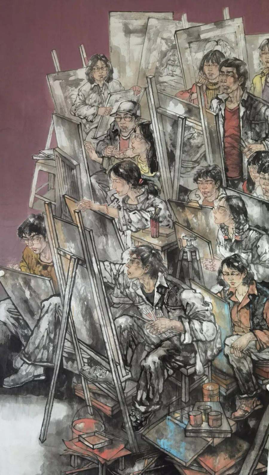 2014年至2015年,我在中国艺术研究院研究生院认识刘新和兄时,他在中国人物画坛已负盛名。那时,他常和浙江的周鹏里画兄一起,把宿舍当成画室,躲在里面潜心研究与交流山水、人物画的水墨技法。我有时也跑到他们逼仄的画室“蹭课”,静静地坐在或站在旁边,听两位画兄探讨“位置经营、随类赋彩”,有点“偷师”的味道。东晋大画家顾恺之在《论画·津逮秘书本》中说:“画人最难,次山水,次狗马;其台阁一定器耳,差易为也。”唐代画家张彦远发展了这一观点,回答了为何“画人最难”,他在其著作《历代名画选》中认为:“人物有生气可状,须神韵而后全;若气韵不周,空陈形似,笔力未遒,空善彩傅,谓非妙也”,又说:“至于台阁、树石、车舆、器物,无生动之可拟,无生动之可侔,直要位置向背而已”。新和兄本毕业于清华大学美术学院艺术设计专业,后转向绘画,而且选择了“最难”的人物画。而今,已过去了10年,但他对人物画创作仍然充满着高度热情,笔下总是挥洒出阳光——他笔下人物的外部形态与内心世界,各因其活泼的生命而呈现出万千气象,人物风采、气韵、骨相表现具有统一性,并且不断地探索人物画的创作,特别是近几年来,其宏大叙事的画作也不断涌现,而令人惊喜的是他越来越准确地驾驭着风采、气韵、骨相的统一。毫无疑问,新和兄的创作,已进入新的境界。