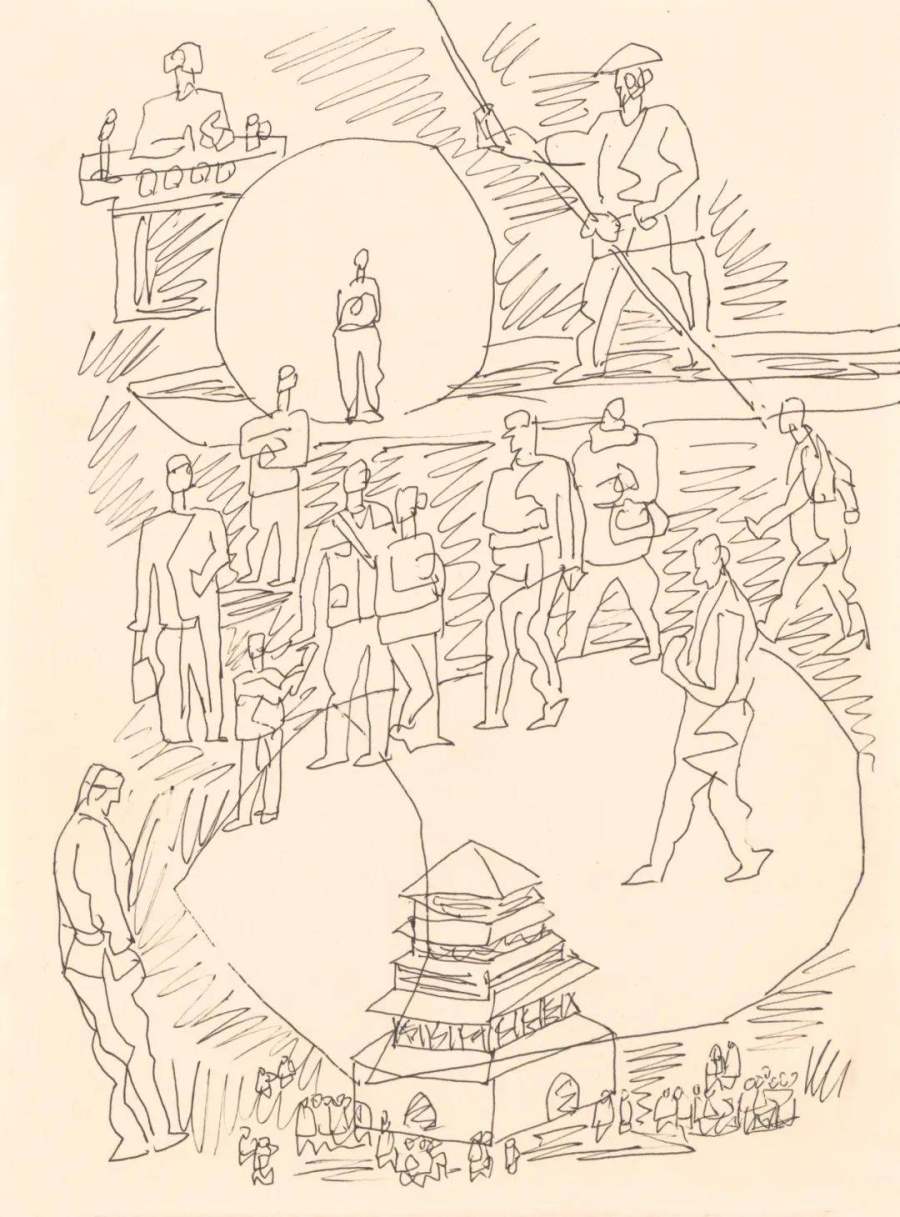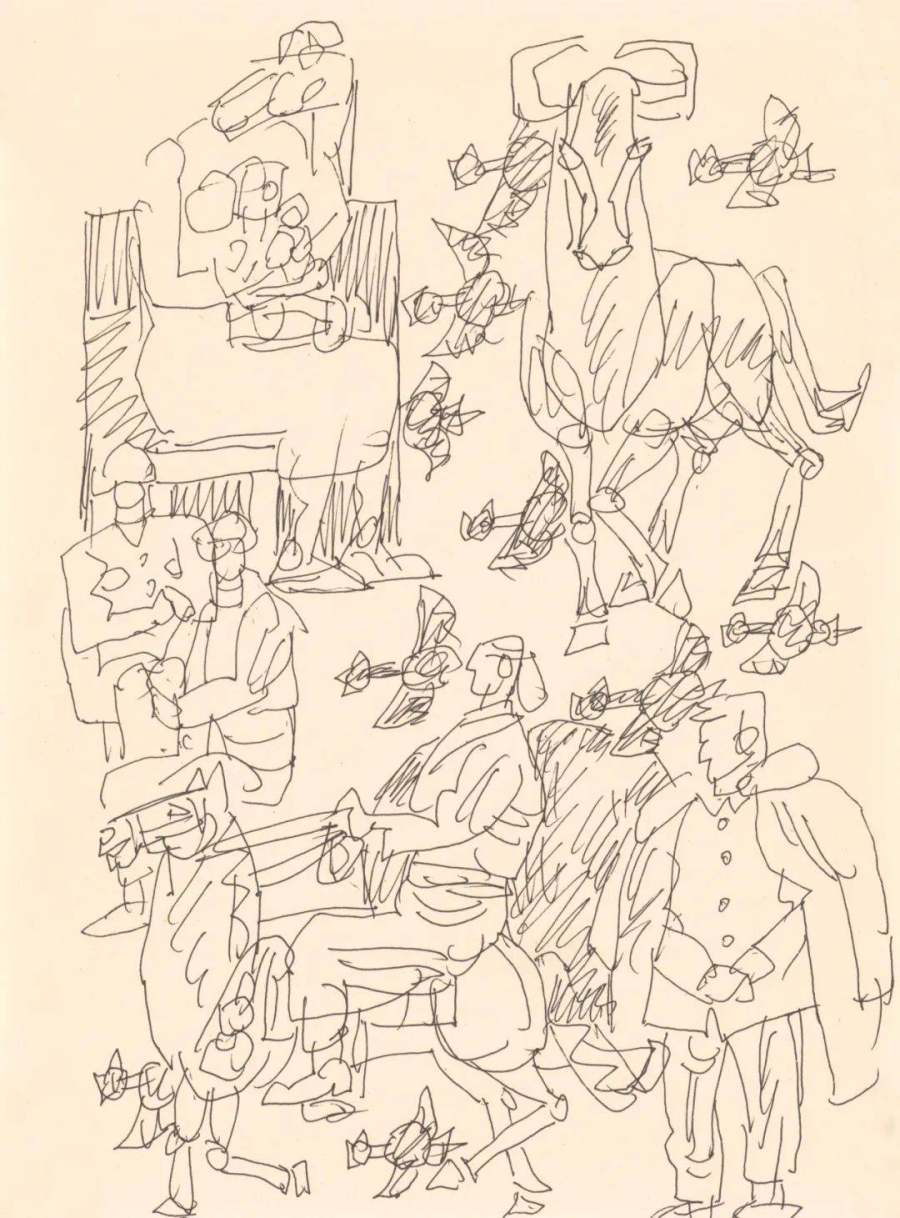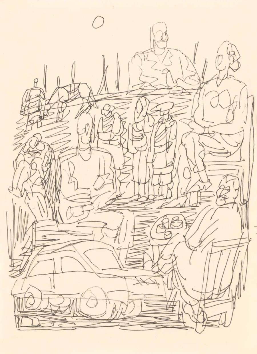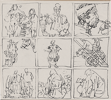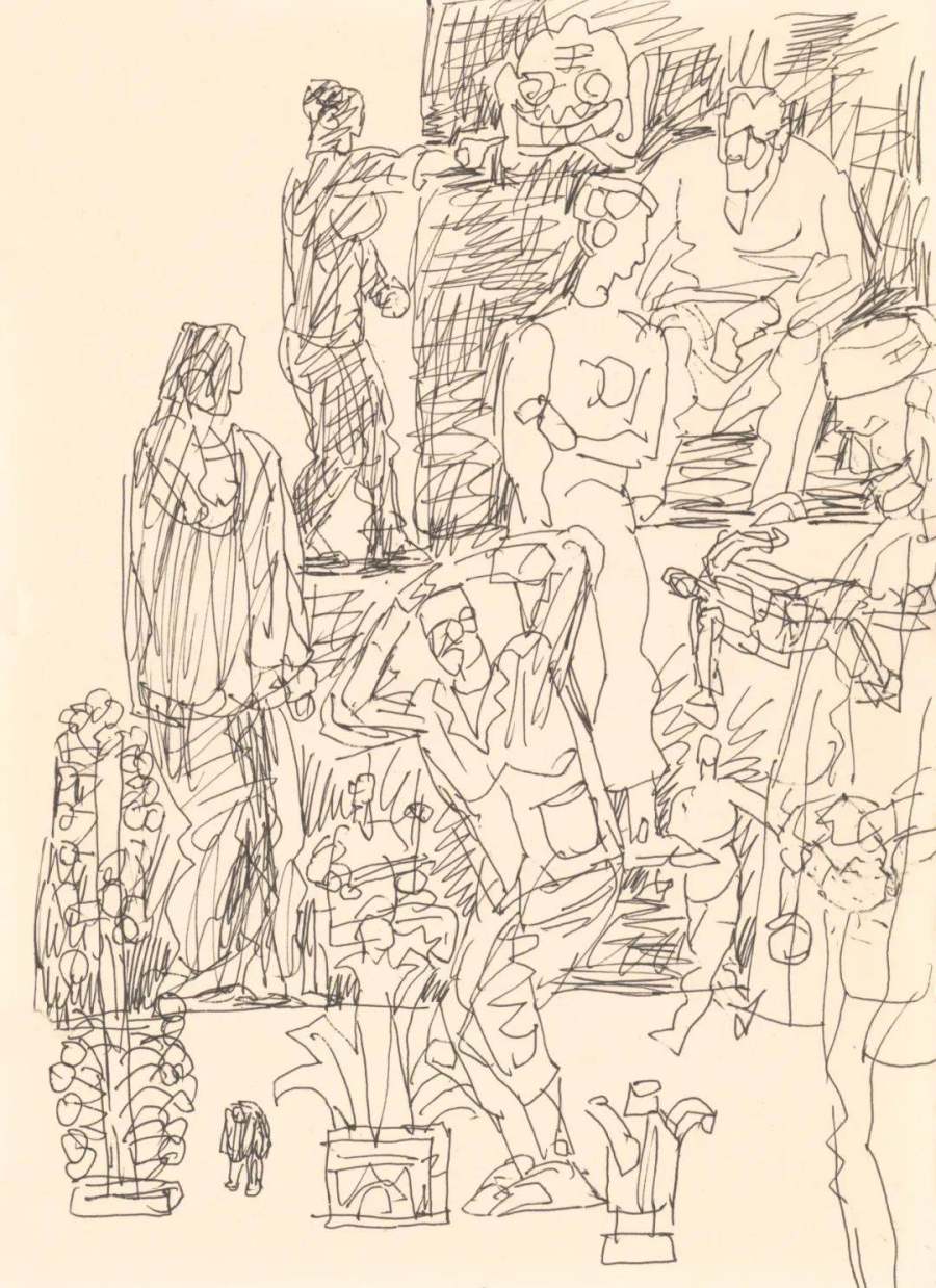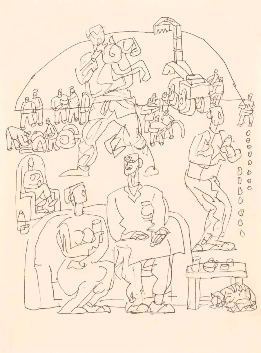 写生,是二十世纪中国现代美术教育的重要内容之一,其目的在于培养艺术家面对现实和把握现实的能力,因而成为检验和锻炼艺术家造型能力与现实敏感性的重要手段。可以说,写生能力的提高,不仅有助于艺术家深入生活、了解生活,而且也为艺术创作奠定了坚实的基础。特别是速写式写生成为检验一个艺术家造型能力和对生活的敏感性的试金石,在迅疾而简练的线条中展现出艺术家对解剖、透视、构图、章法的理解和把握。