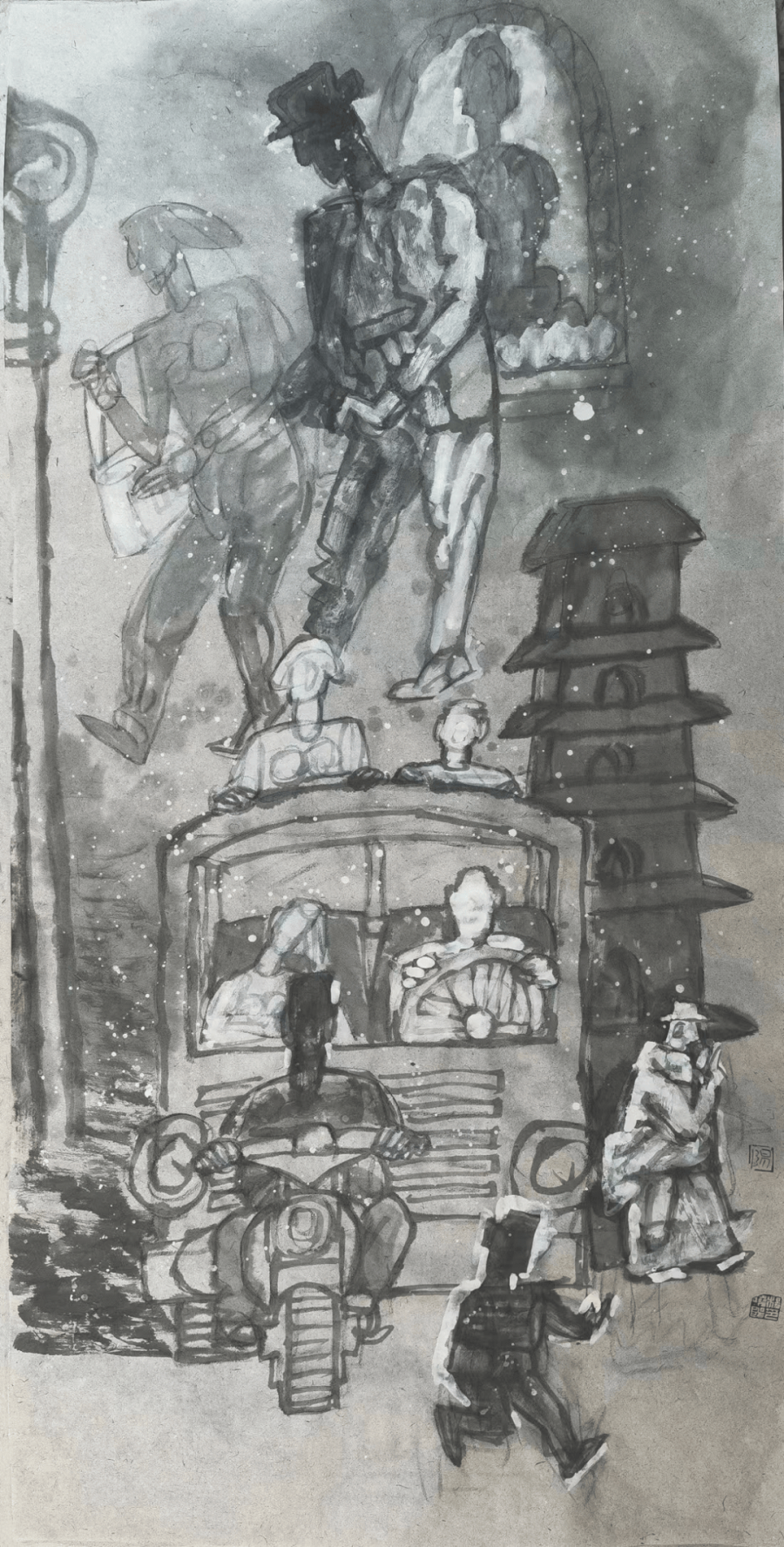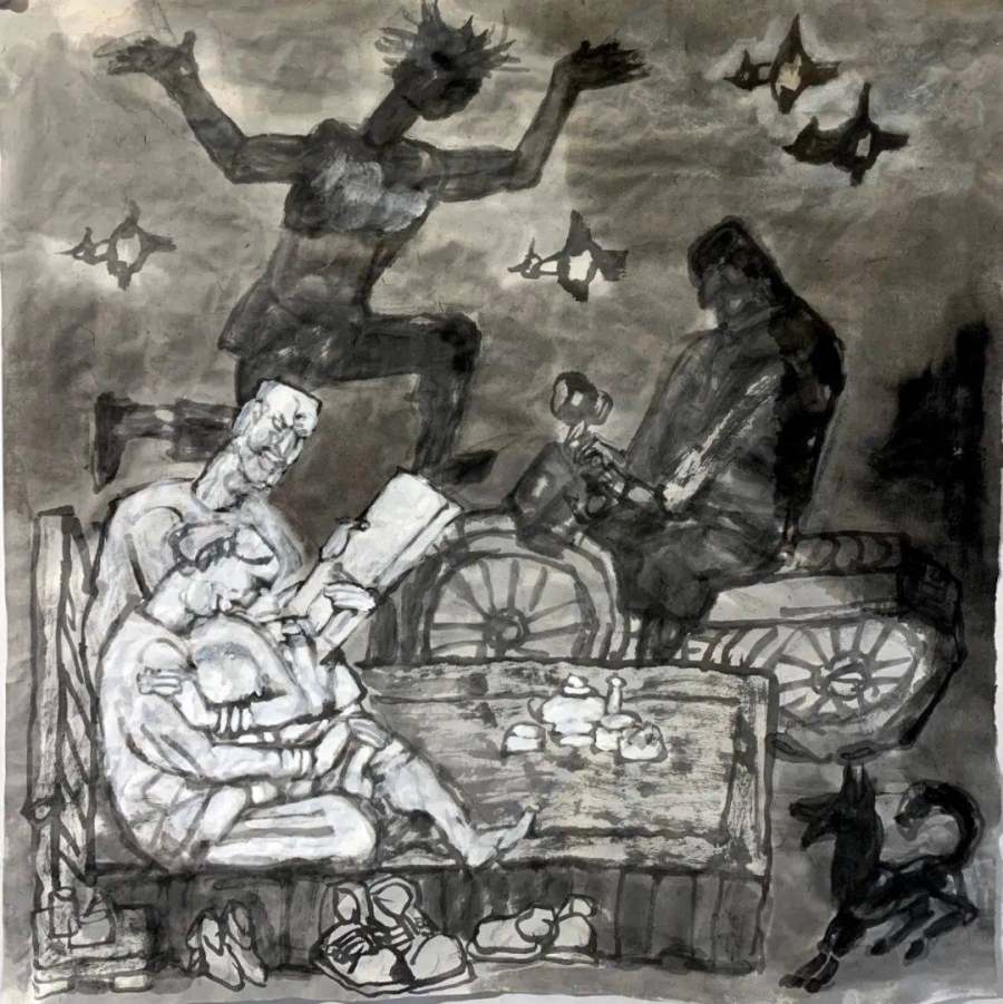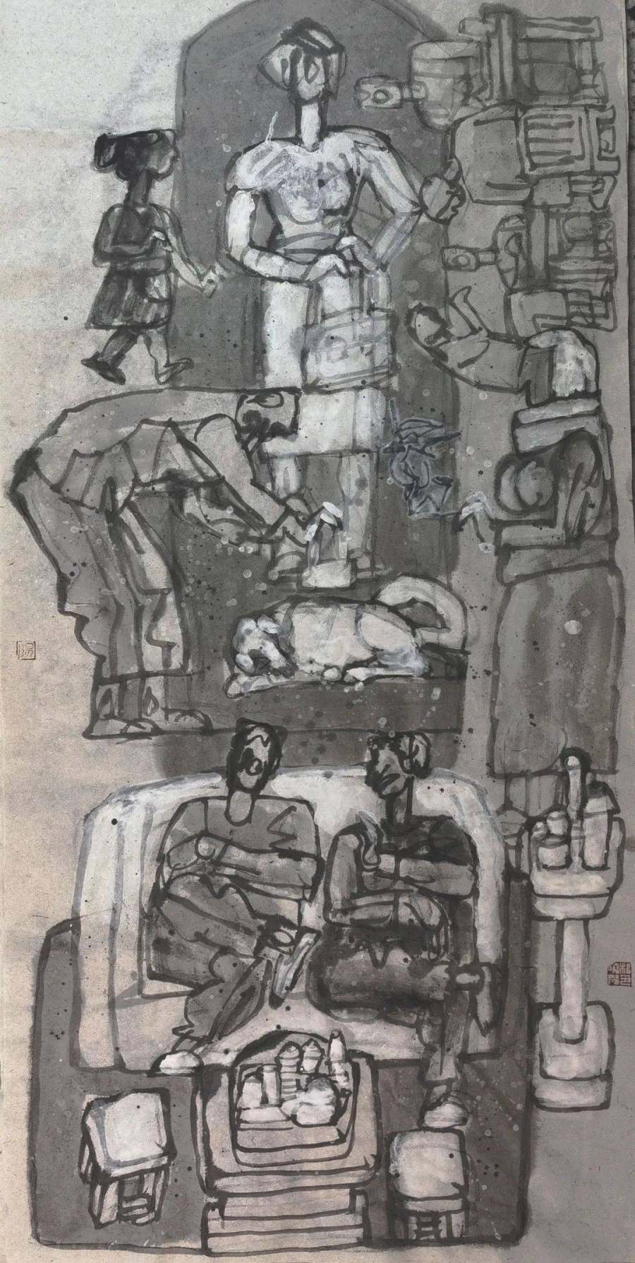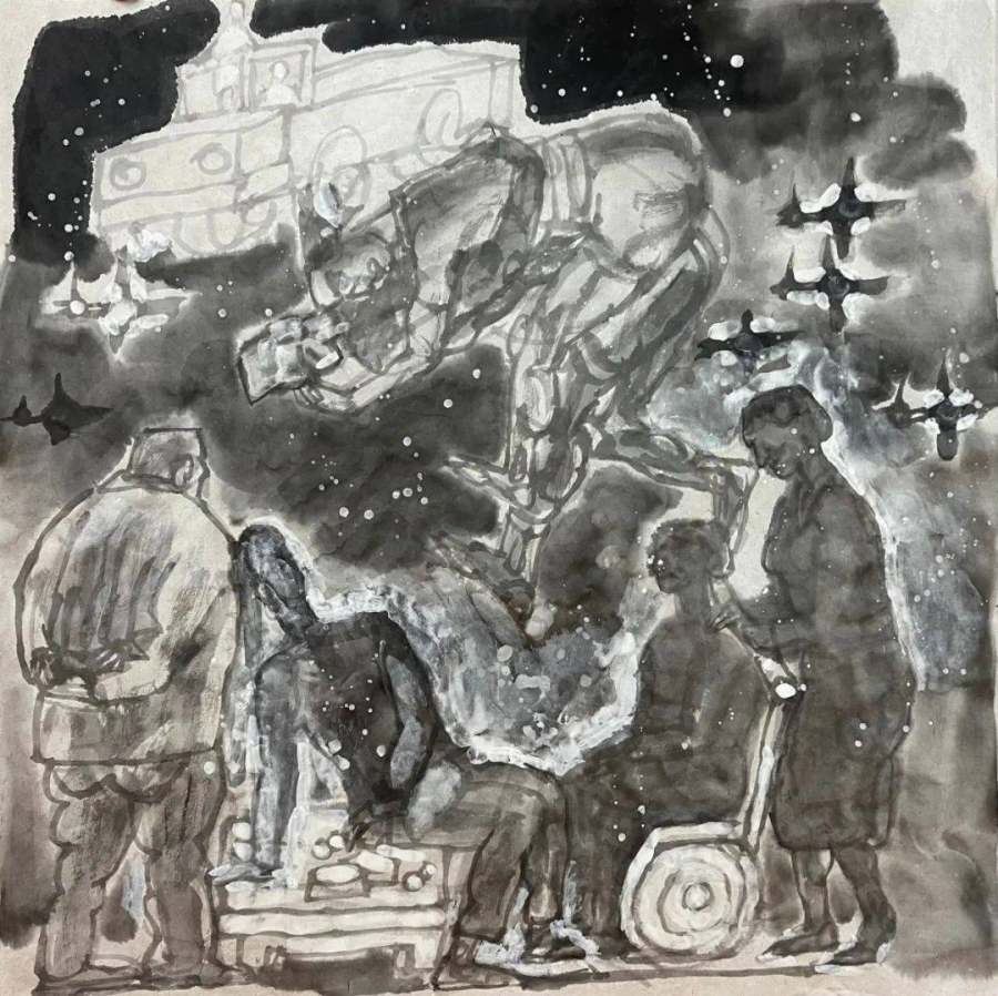 《塞上三日》纸本水墨42cm×63cm 2020年