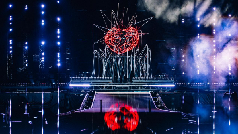 “包裹感”是这次巡演舞台设计的重点,必应选择把延伸台向前扩张,宇宙信号塔向上延展,让整个场域成为宇宙中心。