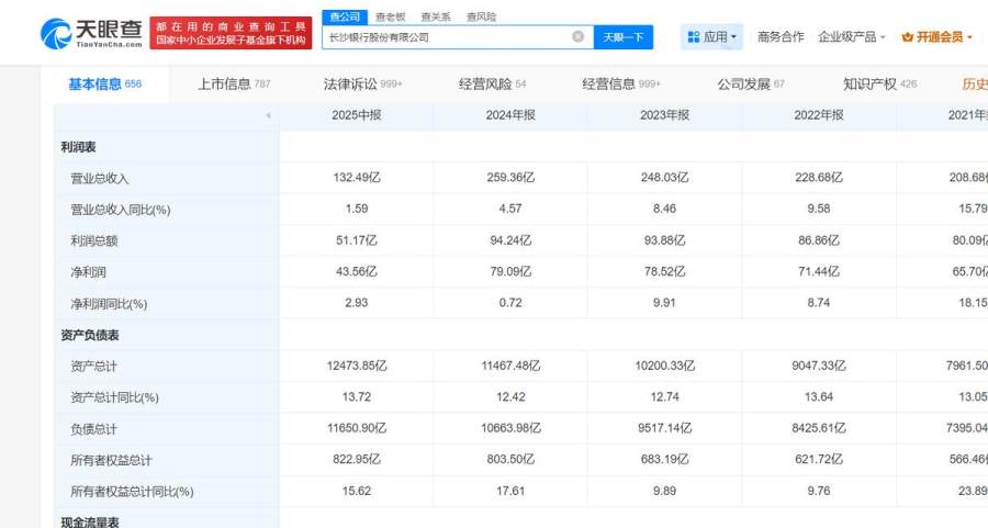 就拿中规中矩的长沙银行来说,天眼查APP显示:今年上半年,其在资产总额达到12473.85亿元,较上年末增长8.78%;发放贷款和垫款本金总额6026.92亿元,较上年末增长10.56%;吸收存款本金总额7591.84亿元,较上年末增长5.01%的大背景下,对应的利息净收入却逆势下滑了。