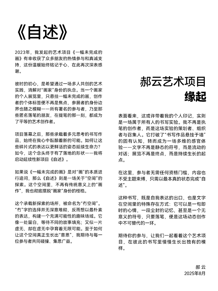 你的执笔将成为展览动态更新的内容,每天都在变化,展览成果由所有的参与者共同构成,从2023到2025,从8月9日开始的每一天。