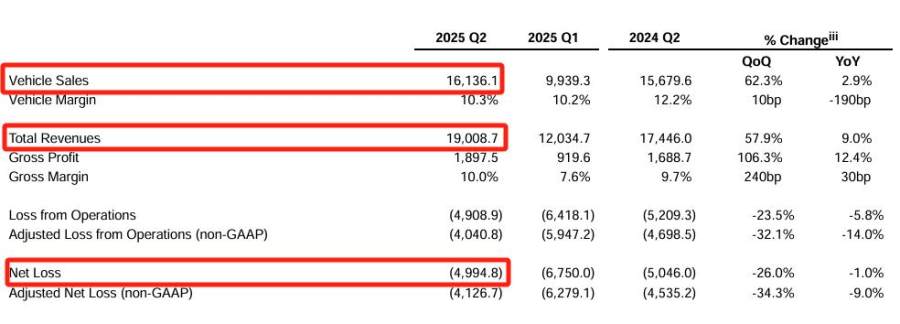 根据蔚来最新发布的财报,2025年二季度蔚来汽车的收入总额为190.09亿元,同比增长9.0%;其中汽车销售额161.36亿元,同比增长2.9%。不过,该公司依旧没有实现盈亏平衡,录得净亏损49.95亿元。