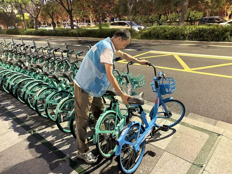 在整治行动当中,工作人员从主次干道、商务楼宇沿线、地铁出入口等人员密集区域向周边徒步巡查,对沿街商户突店经营门前乱堆放杂物、占道商贩违规经营等现象当场劝导、整治;对沿街张贴非法小广告及时进行清除;对乱停乱放的非机动车整齐规范的摆放在停车区域,对于损坏的、大量堆放在道路上的的共享单车,联系共享单车责任公司清运拉走,避免对交通造成影响。