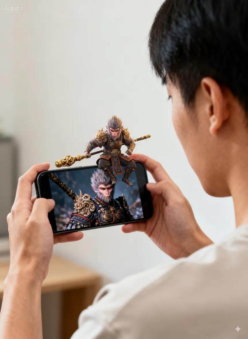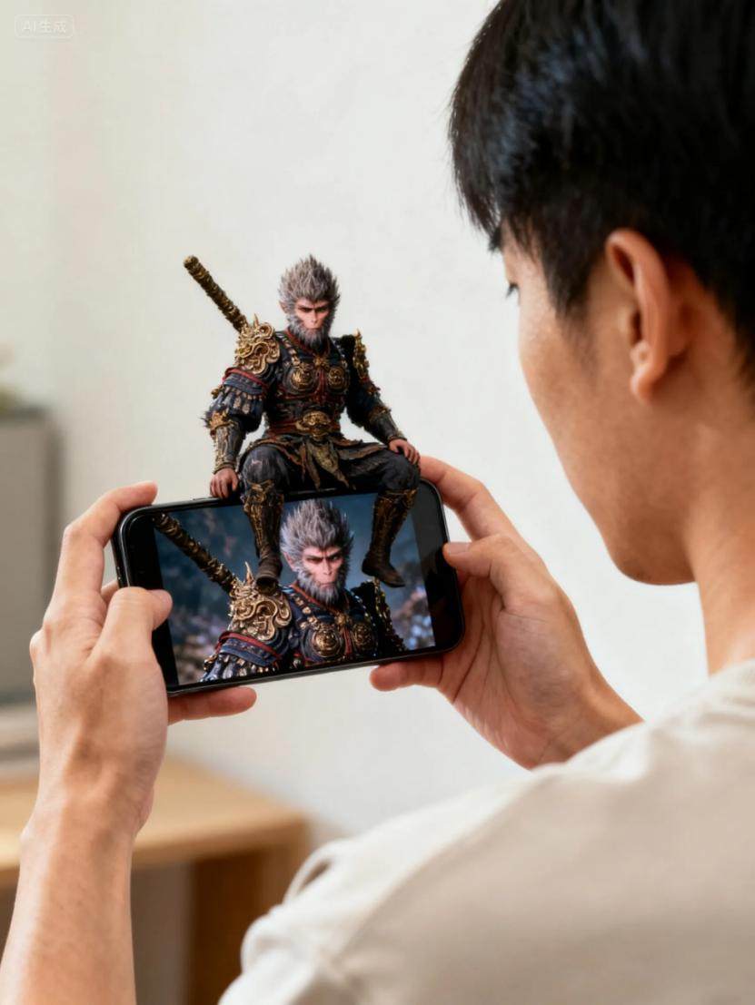 这波题考的是这两个模型,能不能认出游戏圈顶流“悟空”?还得有想象力,让他合理地“坐”在手机上。