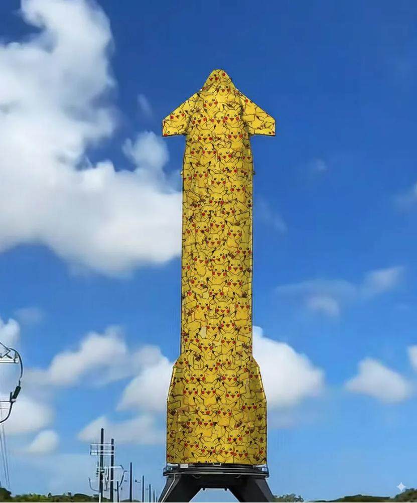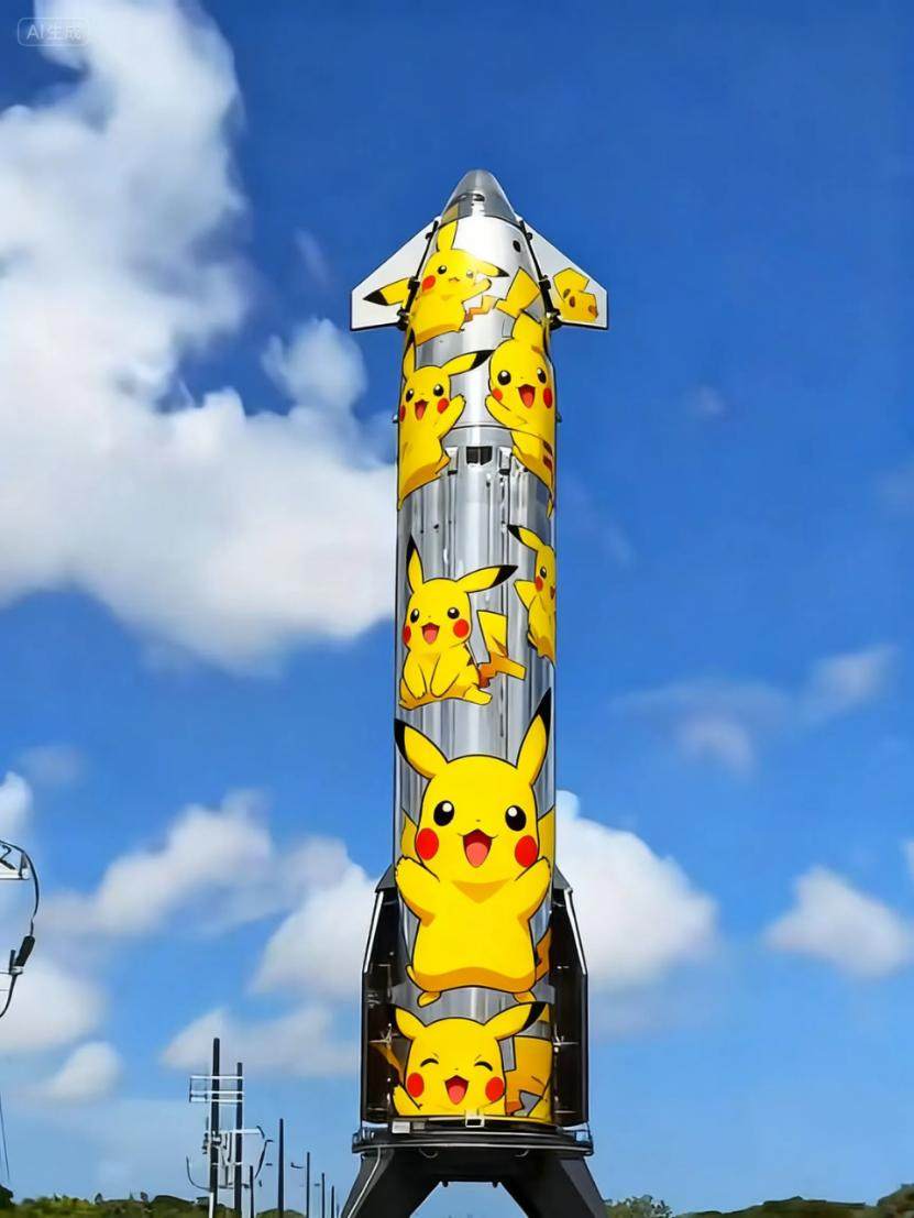 下面这具有视觉冲击力的是Nano Banana生成的,比卡丘贴的严丝合缝。能看得出来,“比卡丘”和“星舰”都是Nano Banana舒适区内的元素,它能生成视觉冲击力极强的画面。