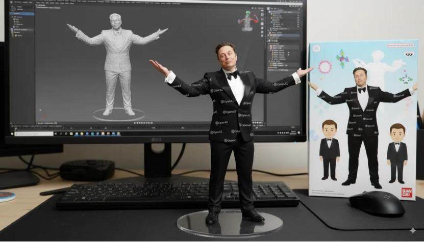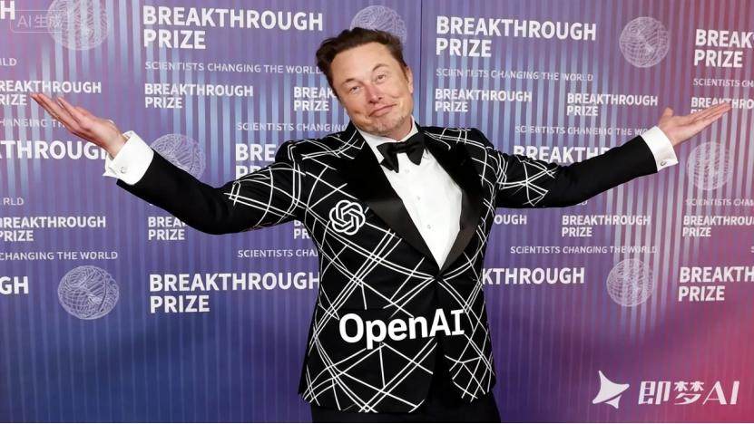二者相比,硬要说的话,即梦4.0将OpenAI元素融入Elon Musk的西服后,产生的效果看起来更有设计感一些,但是像是西服的袖口位置,并没有被渲染到:
