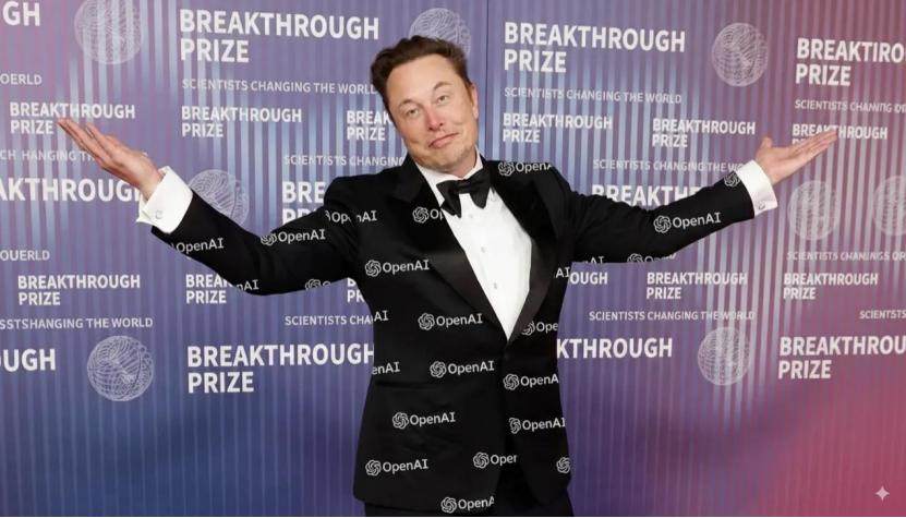 Prompt:将多张OpenAI商标图印在Elon Musk的黑色西服上。