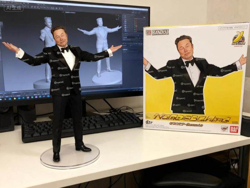 Prompt:使用nano-banana模型,制作图片中角色的1/7比例商业手办,风格为写实,并置于真实环境中。手办摆放在电脑桌上,配有一块 无文字的圆形透明亚克力底座。电脑屏幕上显示的是该手办的ZBrush建模过程。电脑屏幕旁边放置一只 万代(BANDAI)风格的玩具包装盒,包装上印有原始插画,呈现为二维平面插图。请确保所有元素与参考图严格一致。
