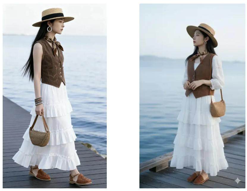 两者在整体表现上都相当不错,成功地将新服装融合到人物身上,效果逼真自然。但在细节处理上,两者都还有提升空间,例如对手腕配饰的理解和重绘都出现了一些偏差。