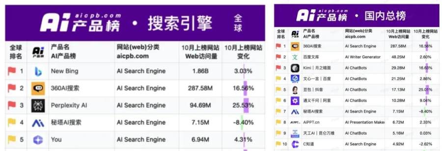 当时的360AI搜索,也同样是以答案引擎的优势博出圈,长文本、多模态都成了关键的宣传点。2024年10月,据AI产品榜统计,360AI搜索当月访问量已经达到2.87亿次。