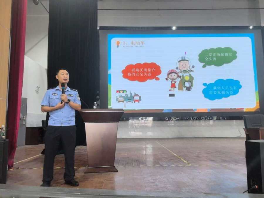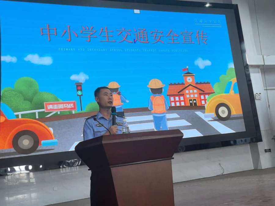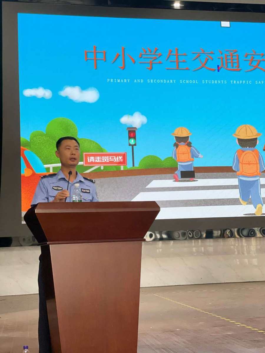 活动现场,范洋警官结合中小学生日常出行特点,围绕“知危险、会避险”的主题展开了精彩宣讲。范警官借助精心制作的多媒体课件,以直观的图片、震撼的视频案例,深入浅出地讲解了步行、骑行、乘坐各类交通工具时应遵守的交通规则以及注意事项。着重讲解了安全出行、文明乘车、佩戴头盔的重要性,如何正确过红绿灯,以及系安全带的重要性等常识,用真实案例敲响安全警钟。同学们一个个聚精会神听得特别认真。