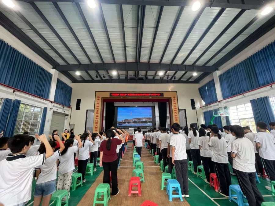 早上8点,义工们早早来到学校活动场地,有的开始布置会场,有的和音响师沟通课程内容,有的和学校老师对接具体工作安排,大家各司其职,有条不紊的忙活着。8时50分,激昂奋进的《义勇军进行曲》音乐响起,全体师生以和义工们齐声高唱国歌。随后,主持人宣布活动正式开始。来自长沙县交警大队果园中队范洋警官为全体在场人员带来了一堂生动、实用且深刻的交通安全教育课。