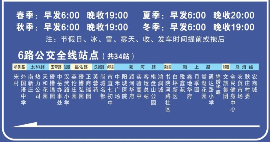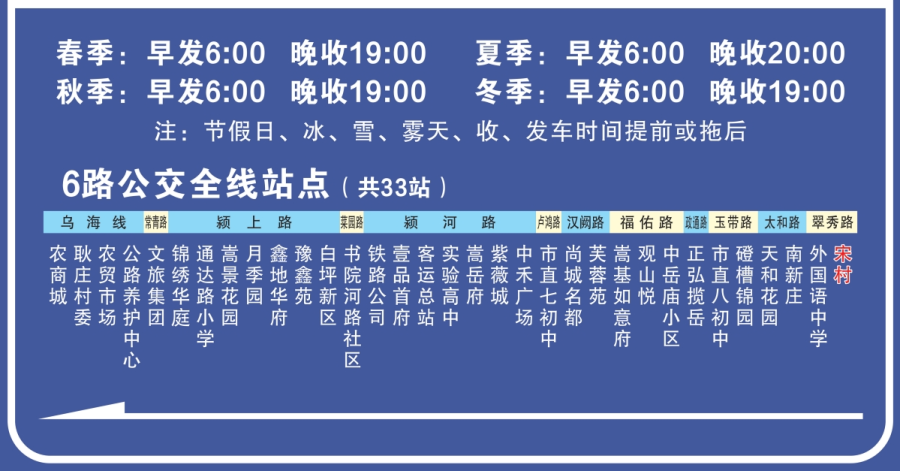 10月1日——5月31日执行春、秋、冬季时间。早上6:00发车、晚上19:00收车。