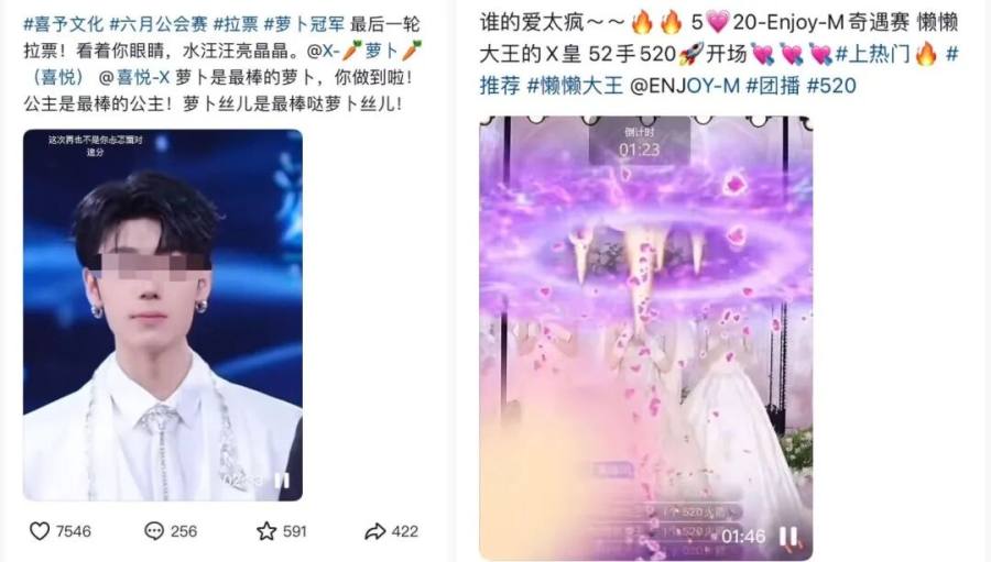 散粉们通常会跟着榜一上票:一边看着榜一砸出999+嘉年华,一边跟上散票;而作为CP粉的米勒,会把这段录屏收录进自己的CP视频里。