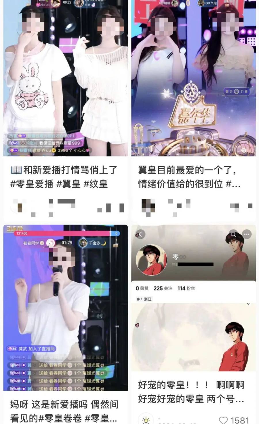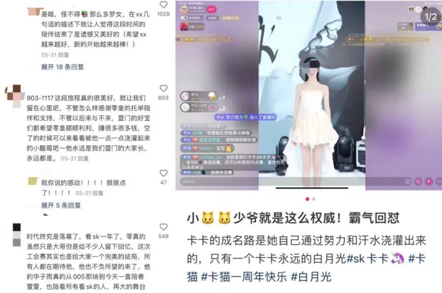 很多帖子里,粉丝会自发给榜一大哥造人设:比如卡卡的“猫皇”被粉丝叫“少爷”,萱萱的“零皇”被叫“叔”(粉丝猜测零皇年纪偏大,且有过离异经历)。两人人设不同:一个是年轻浪漫的“霸总”,另一个是细水长流、陪伴托举的守护神。