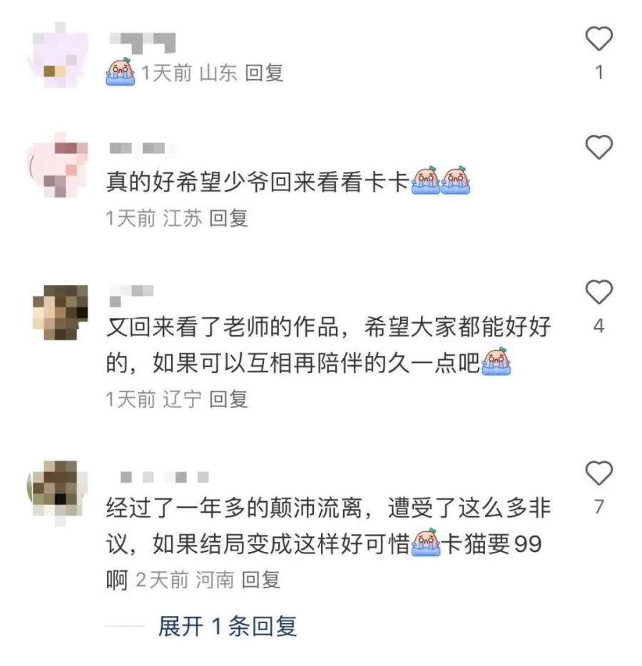 猫皇视频主页的评论区里,也满是散粉的不安疑问与请求:“少爷有空也去看看卡卡吧。”下面则有粉丝反驳:“少管大哥,有本事你自己刷。”