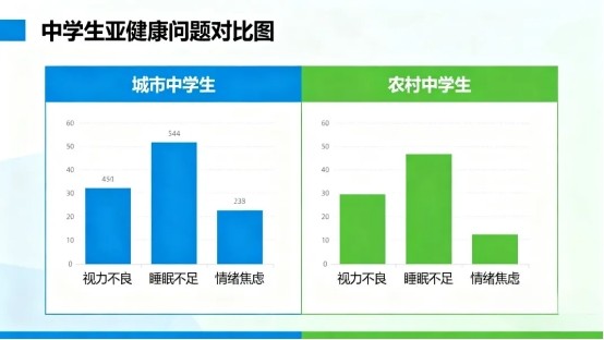 青少年群体中,2023 年教育部《青少年健康行为监测报告》显示,中学生因学业压力、电子设备依赖出现视力不良(近视率 81.2%)、情绪焦虑(每周至少 3 次情绪低落)占比 34.6%、睡眠不足(日均睡眠<7 小时)占比 57.8%,且农村地区青少年因 “留守儿童电子设备过度使用” 导致的亚健康问题,较城市青少年高出 11.3%。