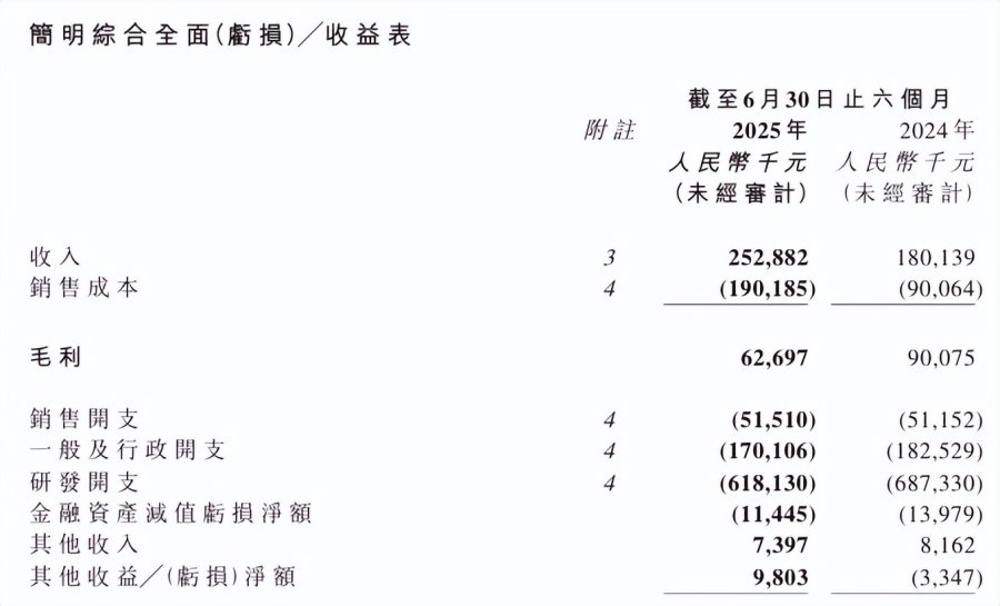 上半年,黑芝麻智能研发开支达6.18亿元,虽同比减少了10.1%,但这笔开支仍达到了当期营收的2.4倍以上。此外,销售开支与一般及行政开支合计也超过了2.2亿元。三费相加远超营收规模,使得公司的经营性亏损成为必然。