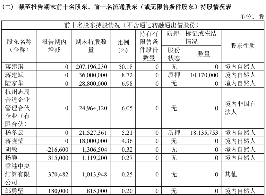 香飘飘2025年半年度报告显示,香飘飘当前三大股东分别为蒋建琪、蒋建琪弟弟蒋建斌和蒋建琪妻子陆家华;蒋建琪、陆家华、蒋建斌和蒋晓莹共计持有香飘飘70.24%的股份。
