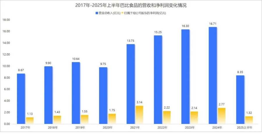 2025年上半年,巴比食品实现营业收入8.35亿元,同比增长9.31%;实现归属于上市公司股东的净利润1.32亿元,同比增长18.08%;实现归属于上市公司股东的扣除非经常性损益的净利润1.01亿元,同比增长15.29%。