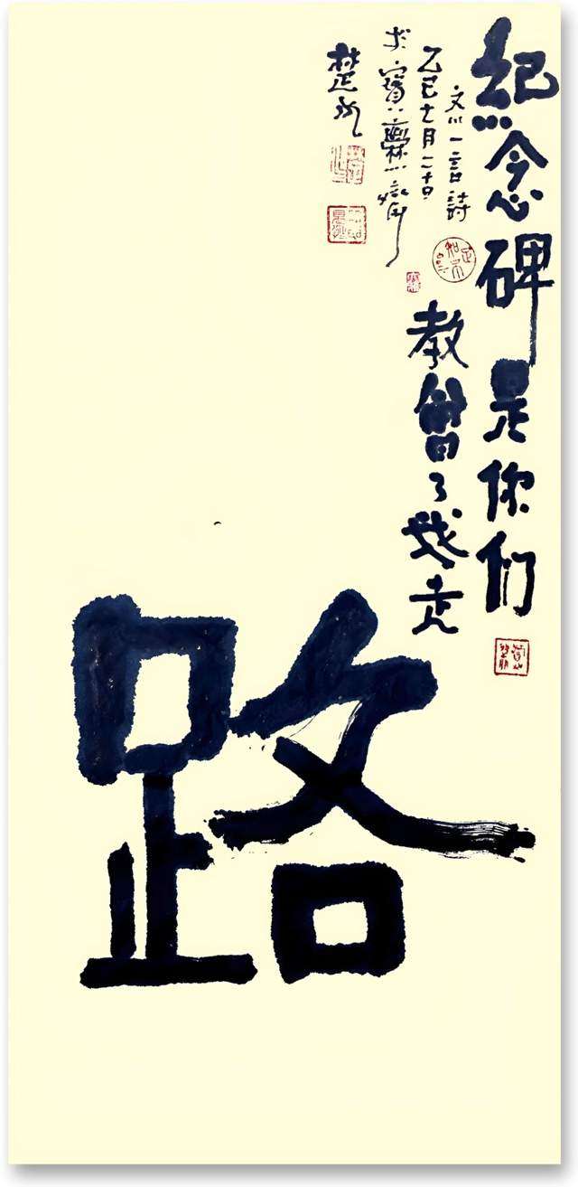 万里归来颜愈少,需要学会随遇而安,尽管仍然多有不平服之气,难免醉里挑灯看剑,梦回吹角连营,怎奈何可怜白发已早生。还期许什么相逢处,自有暗香随马么?吴盐胜雪 ,年光已经不是也,徒有痴情若梦。所以,还是东坡先生,此心安处是吾乡,醉有酒,读有书,茶禅一味,倒也逍遥自在。正适诗人文川先生嘱我写一首他的一言诗,如北岛《生活》网,不是江河的《纪念碑》,乃文川是你们教会了我走路的《纪念碑》,诗人岛子曾经尝试用圣水墨写现代诗,其实,一言诗更适合书写,也比猫画虎,写了一首: