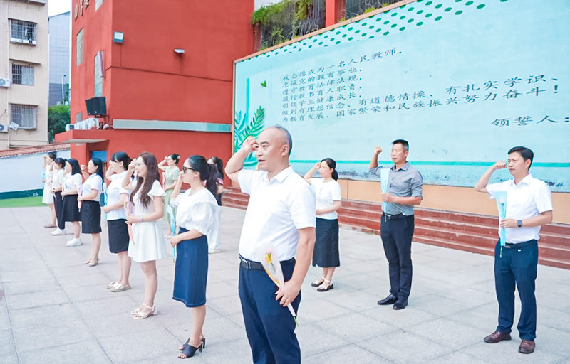 “我志愿成为一名人民教师,忠诚党的教育事业…”老师们用坚定的声音许下了对教育事业的郑重承诺。