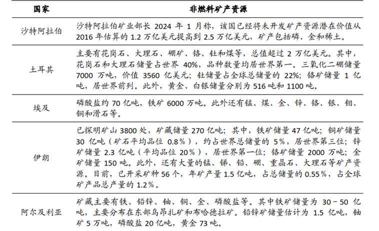 图:中东主要国家非燃料矿产资源储量来源:海通国际