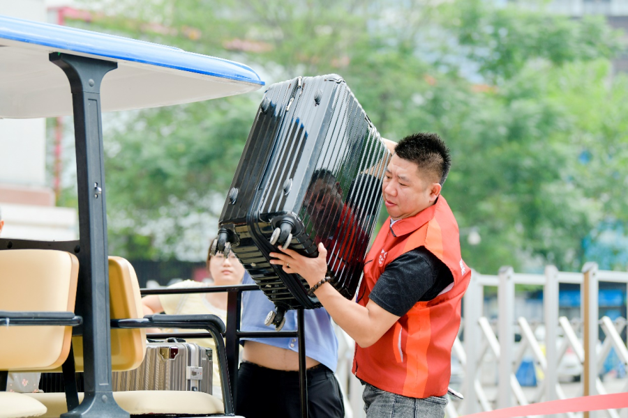 骄阳似火,却敌不过物业人的似火热情。在各校门的主要入口,物业组织的“繁星”志愿者服务队格外醒目。他们主动上前,热情地从家长和新生手中接过沉甸甸的行李,用校园观光车一趟趟地往返于报到点和宿舍楼之间。汗水浸湿了他们的衣背,笑容却始终挂在脸上。“同学,我来帮你!”“阿姨,行李交给我们,您放心!”一声声亲切的问候,一次次有力的援手,极大地减轻了新生及家长初来乍到的奔波之苦,实现了从家门到“家”门的无缝衔接。