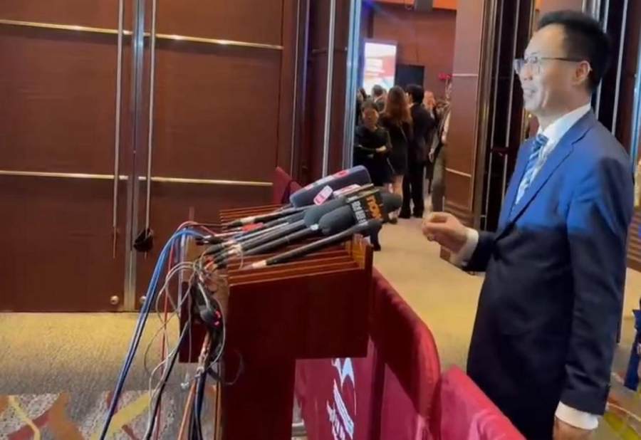 峰会现场,叶志聪接受众媒体采访