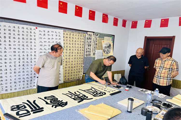 随着交流的深入,笔会正式拉开帷幕。悦习斋习字社内早已备好笔墨纸砚,老师们纷纷走到案前,或凝神构思,或提笔落墨。有的老师擅长楷书,笔锋端正严谨,字迹工整秀丽;有的老师偏爱行书,笔墨流畅自然,气韵生动灵动;还有的老师将民间艺术元素融入书画创作,作品充满独特韵味。高新区摄协的老师则手持相机,穿梭在活动现场,用镜头定格下老师们创作时的专注神情与作品的精彩瞬间,记录下这场文化雅集的珍贵画面。