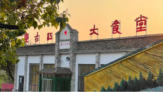 而东方红大食堂,则是时光隧道的入口,将人们瞬间带回到上世纪 60 年代的 “人民公社时期”。青砖墙斑驳的痕迹,仿佛在诉说着岁月的故事;老照片上人们质朴的笑容,充满了对生活的憧憬;木桌椅散发着淡淡的木香,承载着往昔的回忆;黑板报上鲜艳的粉笔字,写满了那个时代的口号与理想;红标语和老电视,更是那个特殊时代的鲜明标志。当你坐在食堂里,品尝着劈柴炖柴鸡、和村熏肉、小酥肉、大葱炒皮渣、精品合碗、炸灌肠等传统老味道时,每一口美食都像是一把钥匙,打开了记忆的闸门。这些传统老味道,不仅仅是味蕾的享受,更是对过去生活的一种怀念与致敬,让你在品尝美食的同时,能够深入地了解那个时代的生活风貌和人们的精神世界。