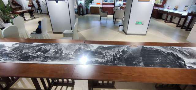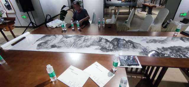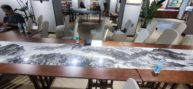 近日,和一壶山人聊了一下午。在嘉州宾馆的今古传扬艺术空间,此地水一方学人彭九鸣和邓九龙的字画正在出陈中,《烟云过眼》的长卷让人叹为观止。