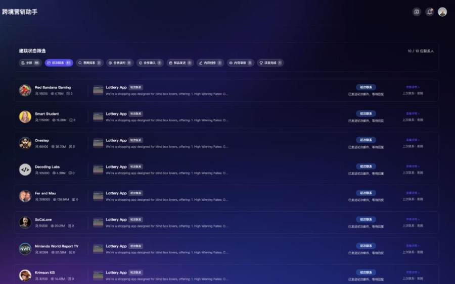 最直接的就是语言问题。大多数品牌只能在TikTok、Instagram、YouTube或Facebook上手动搜索网红,再通过邮件或私信一对一沟通。但个人发送的邮件,在内容上既不专业,也缺乏吸引力;而且网红们的社交媒体私信和邮箱里信息太多,品牌商的合作邀请常常被淹没,石沉大海。