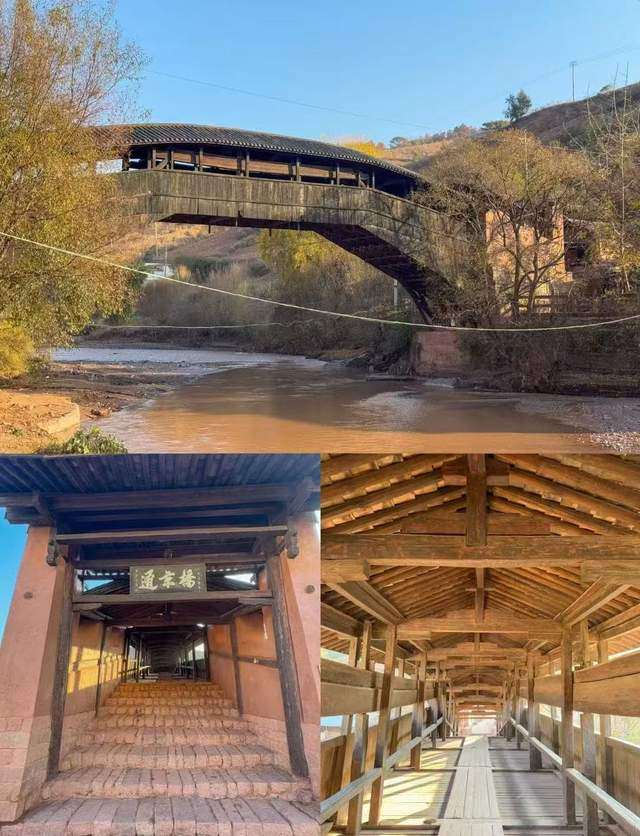 其中,通京桥,始建于清乾隆四十一年,为单孔伸臂式木廊梁桥,全长40米,宽5.5米,高12.5米,净跨径29米。两端用层层叠叠木料伸长出来,连接成桥,如坚毅手臂,不用一个铁钉,卯榫结构,巧夺天工,很科学。是大理州乃至云南省同类梁桥中单孔跨径度最大的桥。