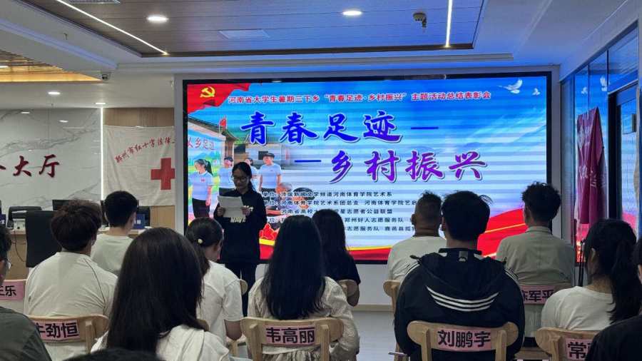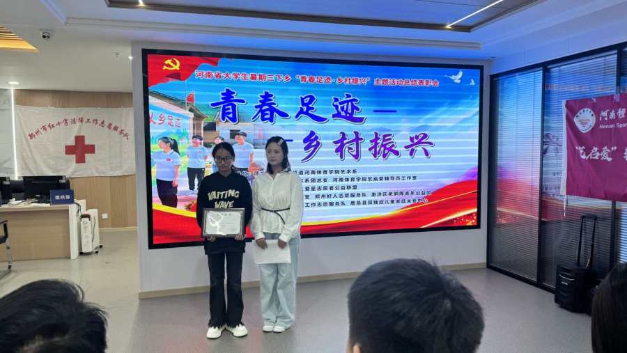 9月14日上午,由顶端新闻文学频道、河南体育学院艺术系团总支、河南体育学院学工部“一站式”学生社区、河南省高校大学生爱星志愿者公益联盟(以下简称“河南高校爱星公益联盟”)主办的2025年河南省大学生暑期三下乡“青春足迹·乡村振兴”主题活动总结表彰会在河南体育学院圆满举办,活动旨在总结暑期三下乡活动成果,表彰先进典型,进一步激发青年学子投身乡村振兴的热情。连堂团支部荣获“优秀组织奖”,连堂团支部副书记连美凤荣获“三等奖”。